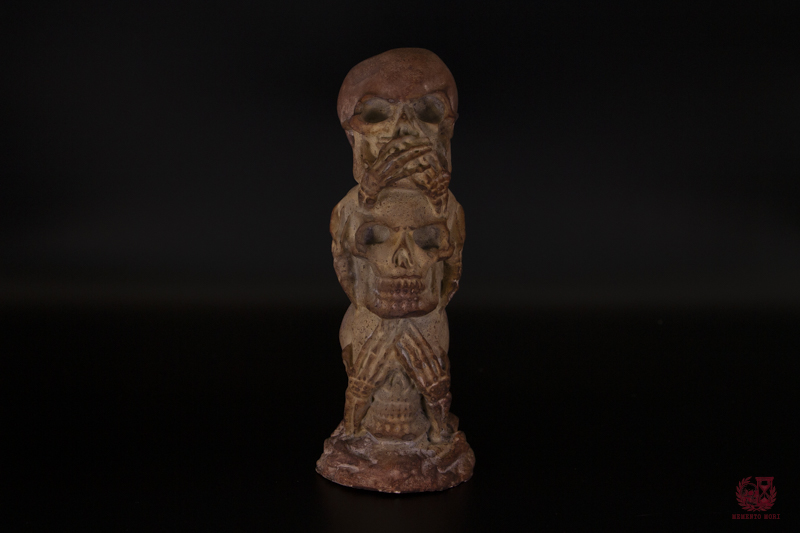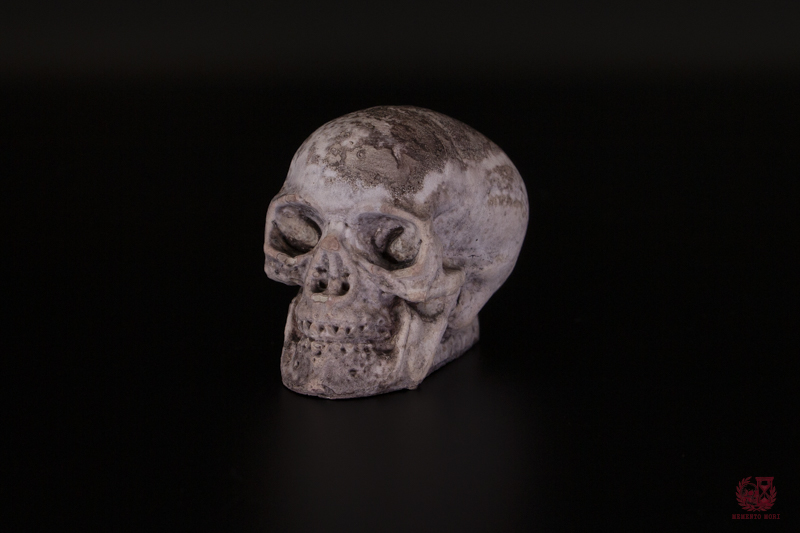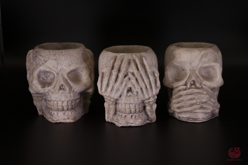 Calaveras y esqueletos de cemento hechos artesanalmente, perfectos para decorar tu hogar con un toque rústico y oscuro.